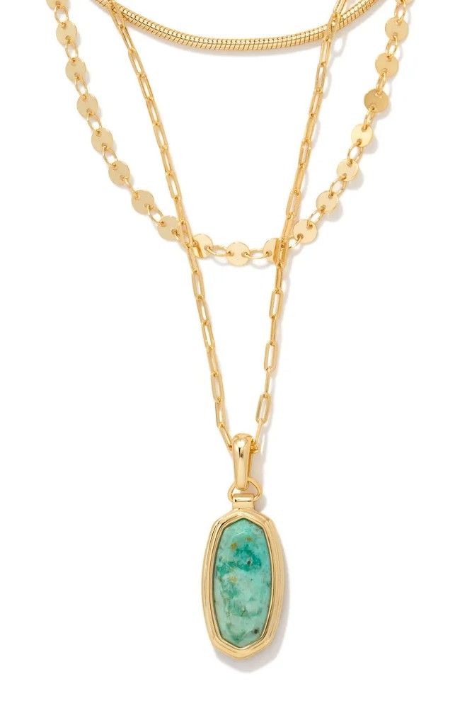 Kendra Scott Framed Dani Convertible Gold Triple Strand Necklace in Sea Green Chrysocolla